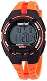 The tough Timex Men's Ironman Triathlon Watch, with its lap and split-time capabilities, was designed to keep up with the most dedicated athletes as they run, bike, and swim their way to success. Constructed with a lightweight resin case, the watch includes a stationary black resin bezel and an attractive orange resin wristband with an adjustable buckle clasp. A strong mineral window shields the digital-gray dial, which displays the time along with the day, date, and month. Four function buttons frame the bezel and allow you to customize your workouts, along with the black-and-orange Start/Split button located below the dial. In addition, this digital-quartz-powered timepiece is water resistant to 330 feet (100M).
